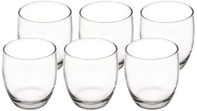 The Amazon Brand – Solimo Juice Glass Set includes six 245 ml transparent glasses with a simple, elegant design. Ideal for everyday use, these durable tumblers are perfect for serving juice, water, or soft drinks.