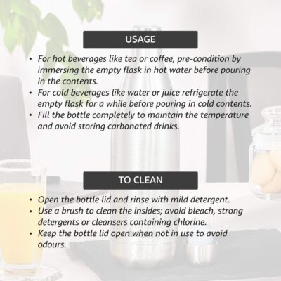 Enjoy long-lasting freshness and temperature retention with the Amazon Brand – Solimo Stainless Steel Insulated Bottle Flask (1000 ml, Silver). Crafted from premium 304 food-grade stainless steel, it ensures safe, hygienic drinking and prevents rust or corrosion even after daily use.