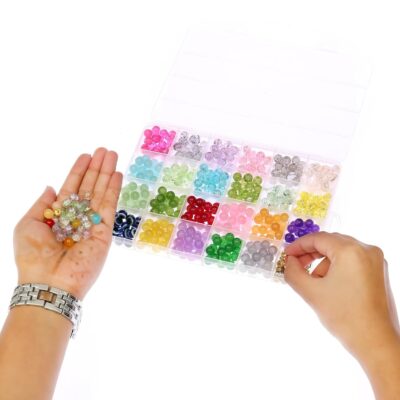 ambitieux Diy Bracelet Making Kit - 350+ Pcs 24 Glass Colorful Beads, 10M Elastic Thread, Jute Bag, And Cutter - Gift For Girls Birthdays (Glass Beads),Multicolor