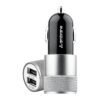 Ambrane 12W Fast Car Charger, Dual USB Output, Multi-Layer Protection, Fast Charging, Compatible with All Cars, Without Cable for All Mobiles & Other USB Enabled Devices (ACC74, Black & Silver)
