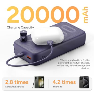 The built-in Type-C to Type-C cable with a loop holder adds to its convenience, keeping your essential cable always attached and ready to use. Its quick 5-hour recharge time using a 20W PD charger minimizes downtime so you can stay powered longer.