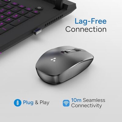 Ambrane Wireless Mouse 2.4GHz USB Dongle Silent Click – the Ambrane Sliq 3 Wireless Optical Mouse (Green) is a compact and versatile wireless mouse designed for everyday computing with PCs, Macs, and laptops. It connects via a 2.4 GHz USB nano dongle for stable, lag-free wireless performance and plug-and-play convenience — just insert the receiver and you’re ready to go. The mouse features 4 responsive buttons and a click wheel, making navigation smooth and intuitive, while the optical sensor with adjustable DPI up to 1600 lets you tailor cursor sensitivity for everyday tasks or precise work. With quiet, silent click operation and an ergonomic shape suitable for both left and right-hand use, this mouse keeps your workspace peaceful and comfortable. Its sleek green finish adds a vibrant look to your setup, and broad compatibility across Windows and Mac systems makes it a practical choice for students, professionals, and everyday users alike.