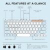Powered by 2 AAA batteries with smart power-saving features (including on/off switch and sleep mode), the keyboard offers portable and long-lasting performance without frequent recharging.