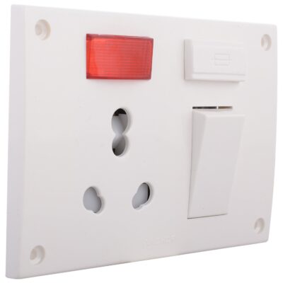 The Anchor 20A Polycarbonate Penta 5-in-1 Combined 4 Hole Switch is engineered to handle high-power electrical applications with safety and efficiency. It features a 20 Amp capacity, making it suitable for heavy-duty appliances in homes and commercial spaces. The 5-in-1 combined design offers organized power management in a compact and practical layout. Made from premium polycarbonate material, it provides excellent durability, heat resistance, and impact strength. Its sturdy construction ensures secure installation and long-term reliability under regular usage. Ideal for residential and office environments, this white combined switch unit delivers dependable performance with enhanced safety standards.