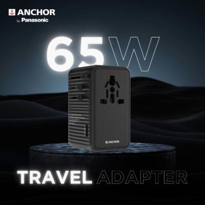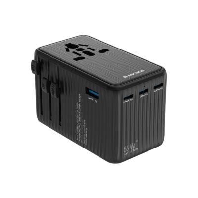 Anchor by Panasonic 65W Universal Travel Adapter with GaN technology is a compact multi-port charger designed for fast and efficient power delivery worldwide. Its durable build and laptop-ready performance make it ideal for travel and daily use.