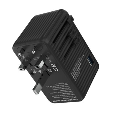 Anchor by Panasonic 65W Universal Travel Adapter (Black – 22846) uses advanced GaN technology to deliver efficient and reliable fast charging across multiple devices. It supports 100-250VAC input, making it suitable for use in different countries when you’re on the move. The multi-port design allows simultaneous charging of smartphones, tablets, laptops, and other gadgets without needing separate adapters. With a compact and durable build, it’s easy to carry in luggage or backpacks for travel. The universal compatibility ensures broad device support, while the smart power delivery optimizes charging speed safely. Finished in sleek black, this travel adapter blends practicality and modern design for everyday convenience.