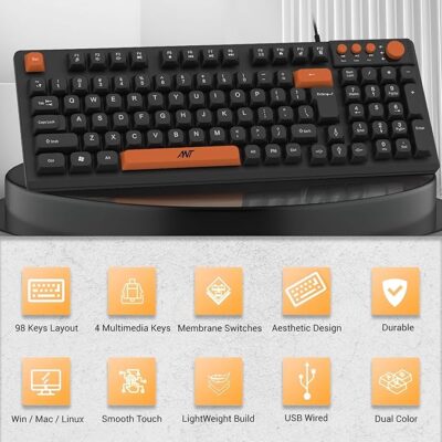 Ant Master 01 New Gen Full Size Wired Office Keyboard | 98 Keys Compact Layout with 4 Multimedia Keys | Membrane Switches | 5M Clicks Life | Windows/Mac/Linux Compatible – Black