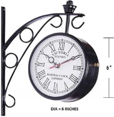 A double-sided antique metal station wall clock with a 6-inch white dial. Perfect for adding classic charm to home décor or office walls.