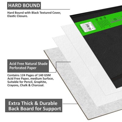 Be the first to review “Anupam SketchO Sketchbook Hardbound, Landscape Opening A3 Size, 140 GSM Acid Free Natural Shade Paper with Elastic Closure (128 Pages)”