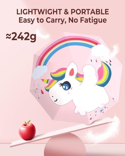 Built with a strong fiberglass frame, this umbrella weighs only 242g, making it extremely easy for kids to carry to school, outdoor trips, or daily use. The canopy is made from 190T high-density waterproof fabric, offering excellent rain protection and wind resistance.