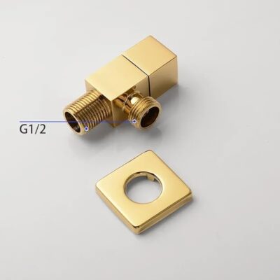 The Aquieen Luxury Series Angle Valve Square with Square Wall Flange in Gold is a premium-quality, wall-mounted stop valve designed to control water flow to fixtures such as toilets and water heaters. Crafted from durable brass, this valve ensures long-lasting performance and resistance to corrosion. Its elegant gold finish adds a touch of sophistication to any bathroom or kitchen decor.