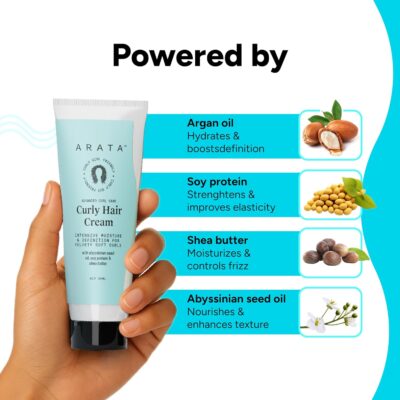 Arata Curl Cream For Curly, Frizzy & Dry Hair | Moisturises & Hydrates Curls | Reduces Frizz| Derma Tested | Soy Protein & Shea Butter | 50g