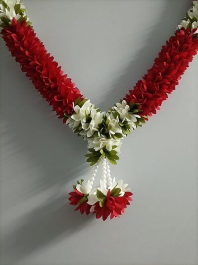 The Artificial Jasmine Garland is a beautifully crafted 1.5-foot mala designed to bring elegance, tradition, and vibrant color to any special occasion. Featuring rich red artificial jasmine flowers, this garland adds a festive and graceful touch to Varmala ceremonies, housewarming functions, weddings, festivals, pooja setups, deity photo frames, and home décor. Made from high-quality materials, it offers the fresh look of real flowers while being durable, reusable, and maintenance-free. Lightweight and visually striking, this versatile floral mala is perfect for enhancing the beauty of sacred spaces and celebratory events alike.