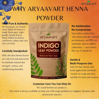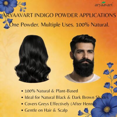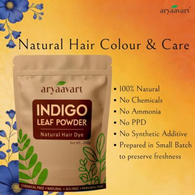 Aryaavart Herbal Indigo Powder is an organic, chemical-free solution for achieving deep black and brown hair shades naturally. It helps protect hair from damage while offering cruelty-free and vegan hair coloring.