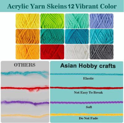 Asian Hobby Crafts Wool Yarn (Set of 12, Multicolor, 12g Each Roll) is a premium-quality yarn designed for knitting, crochet, and various craft projects. Each set includes 12 rolls of multicolor wool yarn, 12 grams per roll, offering a vibrant palette for creative designs. Ideal for knitting with needles, crocheting, DIY crafts, and handmade projects, this soft and durable wool yarn allows for easy handling, smooth stitching, and intricate patterns. Perfect for both beginners and experienced crafters, this set provides all the materials needed to create colorful, cozy, and handcrafted creations with professional-quality results.