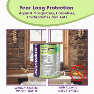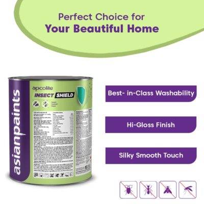 Protect your home surfaces while adding a touch of shine with Asian Paints Apcolite Insect Shield Enamel (1 L, White) — India’s innovative solution that combines decorative beauty with insect-repelling technology.