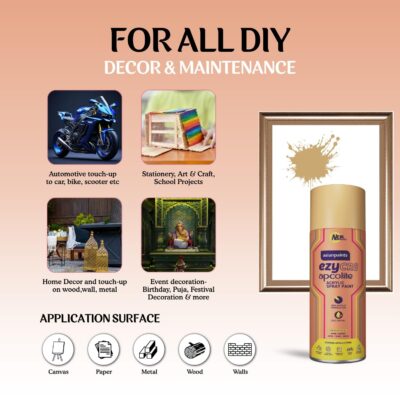 Asian Paints ezyCR8 Apcolite Gold Spray Paint offers a smooth acrylic gold finish ideal for metal, wood, and wall surfaces. It provides quick, even coverage with a durable, premium-looking shine for DIY and decorative projects.