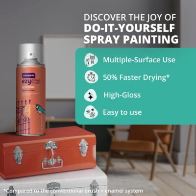 Asian Paints ezyCR8 Apcolite DIY Spray Paint in Smoke Grey delivers a clean, modern finish that enhances metal, wood, and wall surfaces with smooth and uniform coverage. Its 100% acrylic formulation ensures strong adhesion and long-lasting color retention, making it ideal for both decorative and functional upgrades. The fine spray mechanism reduces drips and helps achieve a professional look with minimal effort, even for beginners. The 400ml can provides ample quantity for medium to large projects, supporting multiple coats or wide surface application. Its quick-drying nature allows faster workflow and minimizes downtime during DIY tasks. The Smoke Grey shade offers a subtle, contemporary tone that complements furniture, décor pieces, and restoration work. It performs effectively indoors and outdoors when used under proper conditions, maintaining durability against mild wear. The paint resists fading, helping the surface preserve its elegant grey appearance over time. It is suitable for creative craft projects, home renovation, touch-ups, and personalized transformations. Overall, this spray paint combines ease of use, reliable performance, and a stylish color finish for versatile applications.