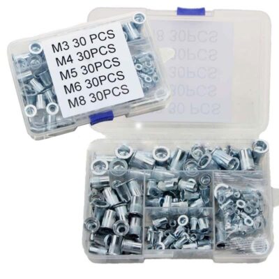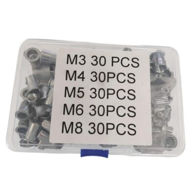 The ATORSE 150Pcs Rivet Nut Tool Kit offers a complete range of threaded insert nuts in sizes M3, M4, M5, M6, and M8, perfect for a wide variety of fastening needs. Crafted from high-quality 304 stainless steel, these nuts ensure exceptional strength, rust resistance, and long-term reliability.