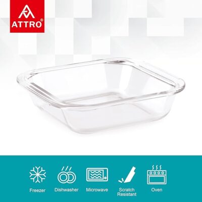 Be the first to review “ATTRO Glassox Borosilicate Square Glass Baking Dish Microwave Oven Safe Freezer Safe Baking Tray Serving Dish Bakeware- 850ml, Transparent”