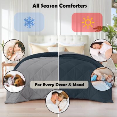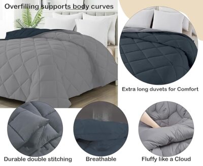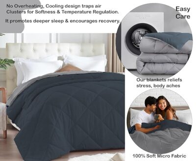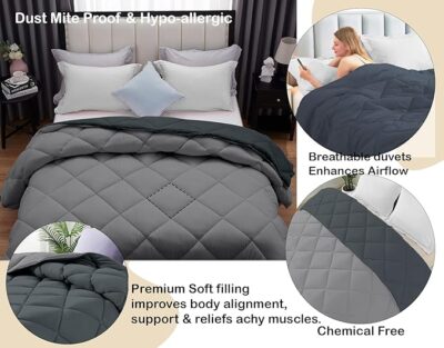AYKA Reversible Comforter 220 GSM Microfiber Reversible AC Comforter/Blanket for Winter/Quilt/Duvets for King Size Double Bed Comforter (Grey & Charcoal, Double)
