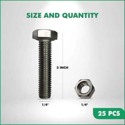 B.K. Jagan & Co Mild Steel Full Thread Round Head Bolts & Nuts (1/4" x 3") – Pack of 25