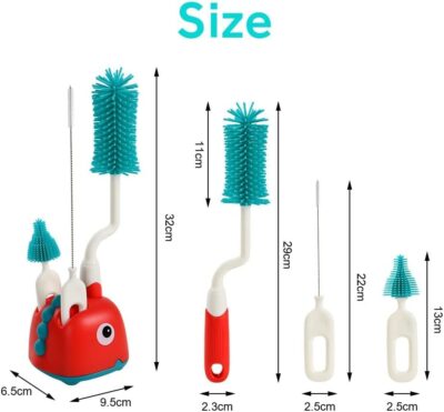 The Baby Bottles Cleaning Brushes Set is a versatile and efficient solution for keeping your baby’s feeding essentials spotless. Featuring silicone bristles with 360° movable heads, the brushes easily reach every corner of milk bottles, nipples, and straws, removing residue and ensuring thorough hygiene. The set also includes a lid cleaning brush for effortless cleaning of bottle caps and hard-to-reach areas. Made from soft, durable, and BPA-free silicone, these brushes are gentle on surfaces while highly effective at cleaning. Designed for convenience and everyday use, this set makes maintaining clean and safe bottles simple and hassle-free for parents.