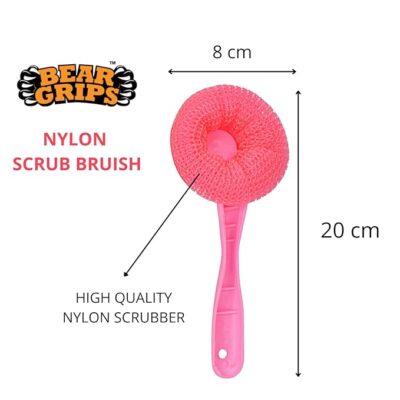 BEAR GRIPS Nylon Brush with Handle – Pack of 6 is a versatile and efficient cleaning set designed to make your kitchen and bathroom cleaning tasks easier. Each brush features sturdy nylon bristles that effectively remove stubborn stains, grease, grime, and soap scum from sinks, wash basins, countertops, tiles, and other hard surfaces. The ergonomic handle provides a comfortable grip, giving you better control and reducing hand fatigue during scrubbing. Ideal for everyday cleaning as well as deep-clean jobs, this pack of six brushes offers excellent value and ensures you always have a reliable tool on hand for multiple cleaning areas around your home. Lightweight, durable, and easy to use, these brushes are a practical addition to your household cleaning toolkit.