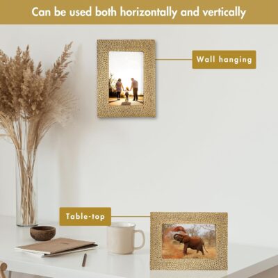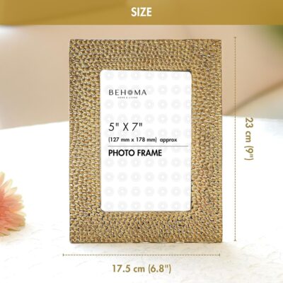 BEHOMA Golden Aluminium Hammered Rectangular Photo Frame (5x7 Inch)