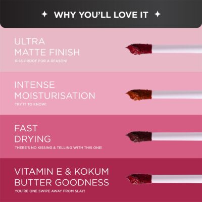 Bella Vita Organic Kiss‑Proof Liquid Lipstick in the shade Cherry Pop offers rich, highly pigmented color with a striking ultra matte finish. The lightweight liquid formula glides on smoothly for even coverage and precise application. Designed to be transferproof and waterproof, it stays flawless through daily activities and long wear hours. Its long‑lasting performance helps maintain vibrant color for up to 18 hours without frequent touch‑ups. Enriched with nourishing ingredients, it provides intense moisturisation to keep lips feeling soft and comfortable. The non‑drying texture prevents flaking and cracking for a smooth feel. Perfect for all‑day wear, this lipstick combines bold color with reliable performance.