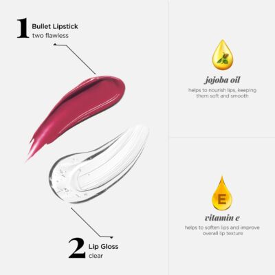 This long‑lasting, smudge‑proof duo is enriched with Jojoba Oil and Vitamin E for smooth, vibrant lips.