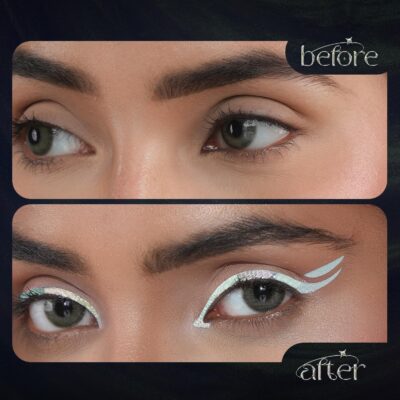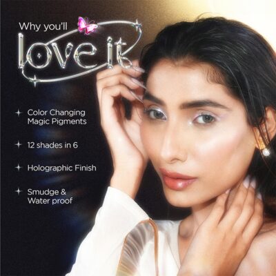 Its waterproof and smudge-proof formula ensures long-lasting holographic finish that stands out with every blink.