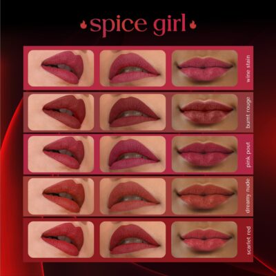 BELLAVITA HIGH FIVE 5‑IN‑1 Liquid Lipstick in the shade Spice Girl offers rich pigment with a smooth, comfortable finish. Its innovative formula provides five benefits including intense moisturization, long‑lasting color, and a velvety texture. Enriched with Vitamin E, it helps nourish and condition lips throughout wear. The lightweight liquid glides on effortlessly for even, full coverage in one swipe. Designed to stay put without cracking or fading, it ensures reliable performance all day. Its travel‑friendly size makes it perfect for on‑the‑go touch‑ups or bag essentials. This lipstick brings bold color and comfort together for everyday glam.