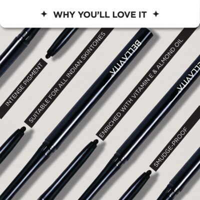 BELLAVITA Intense Drama Kajal Black delivers intense pigment with a long-lasting, smudge-proof finish.