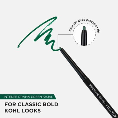 BELLAVITA Intense Drama Kajal Green offers vibrant green color with waterproof, smudge-proof performance.