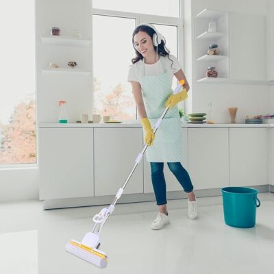 The Big Sponge Mop for Floor Cleaning is a durable and effective wet-floor cleaning tool designed to make household chores easier and more hygienic. Featuring a super-absorbent PVA sponge head, this mop quickly soaks up water, spills, dust, and grime, leaving floors clean and streak-free with minimal effort — ideal for tiles, marble, wood, laminate, and bathroom surfaces. Its built-in butterfly wringing mechanism lets you remove excess water easily without touching the dirty sponge, keeping your hands clean and dry throughout the process. The stainless steel mop stick provides strength, rust resistance, and adjustable length for comfortable use, allowing you to reach under furniture and into tight corners with ease. Lightweight yet sturdy, this versatile PVA sponge mop is perfect for home, bathroom, kitchen, and general floor cleaning, offering efficient performance and easy maintenance for everyday cleaning tasks.