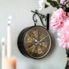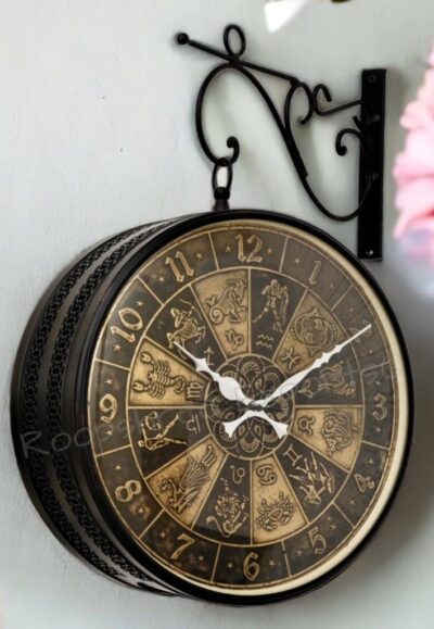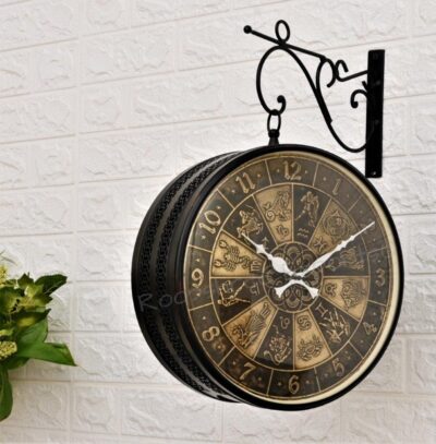 Elegant Black & Brass Double-Sided Analog Wall Clock with a premium vintage finish, offering durability, accurate timekeeping, and a stylish look suitable for any room décor