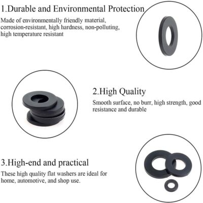 High-quality black fender washer set in 7 sizes (M3–M12) made from durable mild steel with an auto black finish. Comes in an organized storage case for easy access and use.