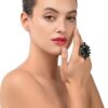This stunning black and green crystal shine stones finger ring is designed to make a bold style statement, perfect for women who love contemporary fashion with a glamorous edge. Its eye-catching combination of deep black and vibrant green crystals creates a striking contrast that sparkles beautifully under light, adding instant charm to your look. The adjustable band ensures a comfortable and secure fit for various finger sizes, making it versatile and easy to wear. Crafted with high-quality materials, the ring offers durability and long-lasting brilliance, retaining its shine through repeated use. Its modern design pairs effortlessly with both western and ethnic outfits, making it suitable for cocktail parties, festive gatherings, or evening events. The intricate stone setting showcases fine craftsmanship, ensuring each crystal is securely placed for a flawless finish. Despite its luxurious appearance, the ring is lightweight and comfortable for extended wear. Ideal for women who enjoy statement jewellery, it can be worn solo for maximum impact or paired with matching accessories for a coordinated look. This piece makes a wonderful gift for birthdays, anniversaries, or festive celebrations, offering both elegance and trendiness in one. Its skin-friendly construction ensures it remains comfortable against the skin, even during long hours of wear. Whether you’re dressing up for a special occasion or simply want to add a pop of glamour to your outfit, this black and green crystal ring is the perfect choice. A must-have for any jewellery lover, it combines sparkle, style, and sophistication effortlessly.