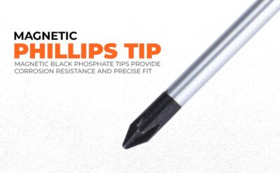 The magnetic black-phosphate tip enhances rust resistance and ensures a precise, reliable fit with Phillips screws. Compact and lightweight at approximately 70 g, with dimensions around 4.8 cm × 4 cm × 26.5 cm, this screwdriver is easy to handle, store, and carry around.