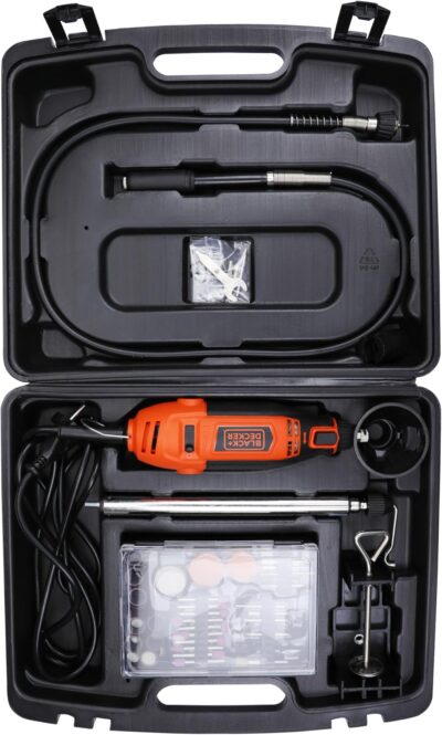 BLACK+DECKER RT18KA-IN 180W Electric Rotary Tool with 118 pc Acc. Kit Box for Grinding, Polishing, Engraving and Carving