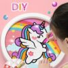 This DIY kit features a cute unicorn design with a ready wooden frame, allowing kids to create a dazzling artwork they can proudly display.