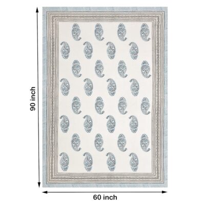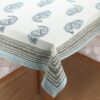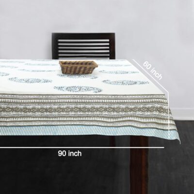 BLOCKS OF INDIA Cotton Hand Block/Batik Printed Rectangular Table Cloth for 6 Seater Dining Table (145 cm X 225 cm, Turquoise Grey Paisley, Pack of 1)