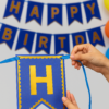 Blue & Gold Happy Birthday Banner | Elegant Party Decoration | Reusable Birthday Bunting