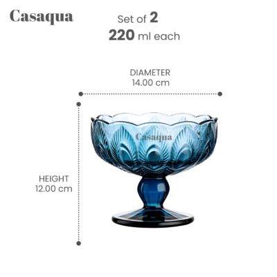 Blue Ice Cream Cups – Set of 2 (220 ml Each) are stylish and versatile reusable glass dessert bowls designed to elevate everyday serving. Crafted from durable, high-quality glass with a soothing blue tint, these cups add a modern, elegant touch to your table. With a 220 ml capacity, they’re perfect for serving ice cream, puddings, fruits, snacks, custards, and desserts in generous portions. The sturdy build ensures long-lasting use, while the smooth finish makes them easy to clean and comfortable to handle. Ideal for home use, parties, celebrations, and gifting, this blue glass cup set blends beauty with practicality for delightful serving every time