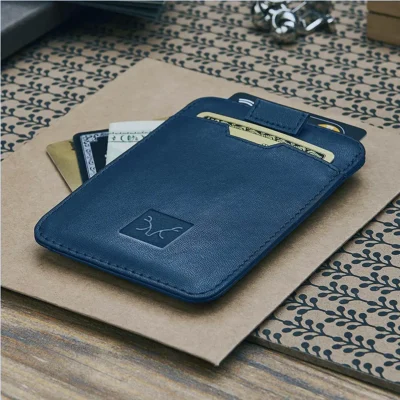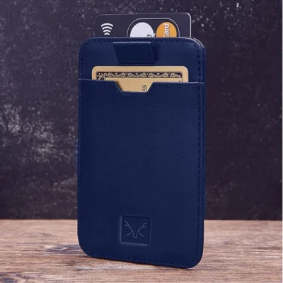 Blue Slim Minimalist Front Pocket Rfid Blocking Leather Wallet for Men