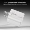 The boAt 25W Fast Charger is a powerful and travel-friendly USB-C wall adapter designed to deliver up to 25 W of fast charging power to compatible smartphones and tablets — perfect for Samsung, Xiaomi, and most Android devices that support PD and PPS fast-charging standards. It features intelligent auto-detect charging that adjusts the power output based on the connected device for efficient and safe charging, helping your phone refill its battery quickly during busy days. Equipped with built-in Smart IC protection, this charger safeguards against over-current, over-voltage, overheating, and short circuits, giving you peace of mind while charging regularly. The compact, lightweight design makes it ideal for home, office, or travel, and its corrosion-resistant pins and scratch-resistant finish ensure long-lasting performance. Pair it with your own compatible Type-C cable (sold separately) to unlock rapid charging for a wide range of USB-C devices.