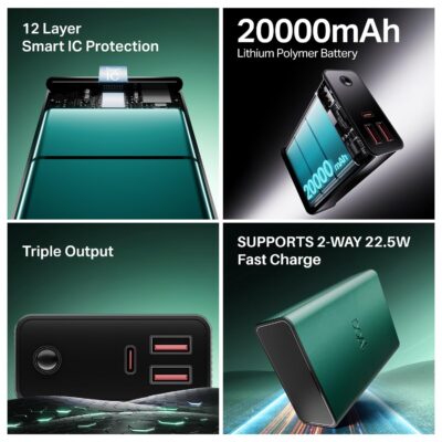 Stay charged on the move with the boAt EnergyShroom PB400 Pro 20000 mAh Power Bank, engineered for performance and portability.