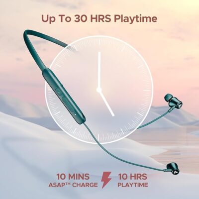 The ergonomic neckband design with a built-in mic and intuitive controls makes them a convenient wireless companion for everyday entertainment and communication.