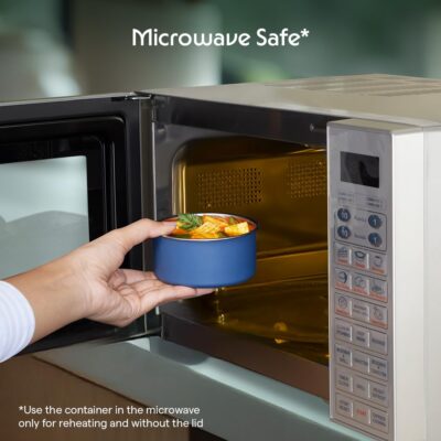 You can easily reheat food directly in the container—just remove the lid before placing it in the microwave. The airtight, spill-proof lids feature a silicone seal to prevent leaks, making them perfect for carrying dal, curries, soups, rice, or pasta.